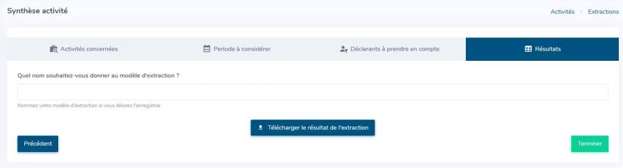 Pour créer une nouvelle extraction, cliquez sur Réaliser une nouvelle extraction et sélectionnez “Synthèse activité” :