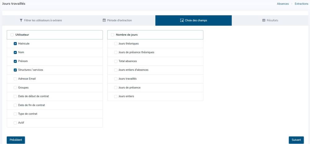 En tant que gestionnaire, cette extraction vous permet de connaitre les jours travaillés et le total des jours d'absences sur une période définie.