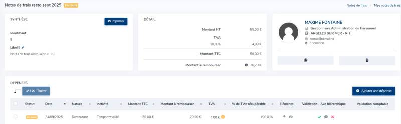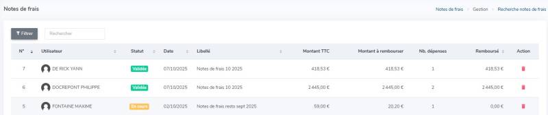 Cliquez sur la note de frais dont le statut est “en cours” :
