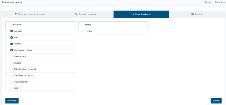 Cochez les valeurs et types de temps que vous souhaitez extraire et voir s'afficher.