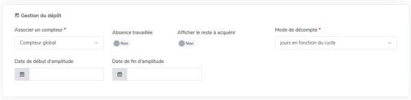 - Date de début et de fin d'amplitude : Indiquez la période durant laquelle l'absence sera visible et pourra être déposée par l'utilisateur.