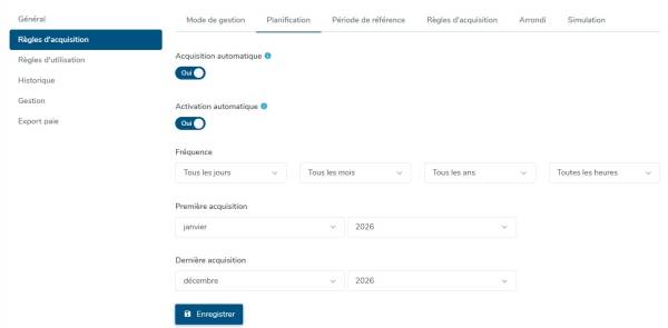 - Acquisition automatique : Cochez “Oui” pour activer le calcul de cette absence.