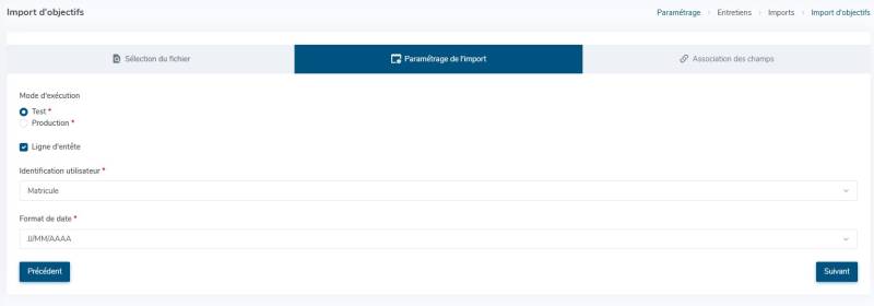Rendez-vous sur l'écran de paramétrage : Paramétrage > Entretiens > Imports > Imports d'objectifs