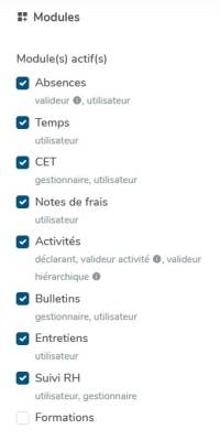 Dans la rubrique Général, vous visualisez les modules actifs :