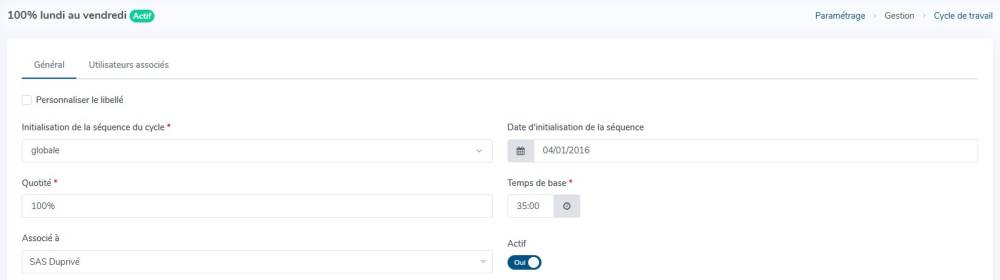 En tant que gestionnaire, vous avez la possibilité de visualiser rapidement les utilisateurs associés à un cycle de travail en affichant l'onglet directement dans le détail du cycle concerné.